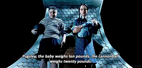 Wednesday and Pugsley sit in the waiting room, dealing with a naïve little girl who is trying to explain where babies come from… until Wednesday replies, deadpan, “They had sex.”