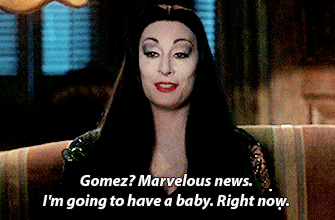 “Gomez? Marvelous news. I am going to have a baby. Right now.”