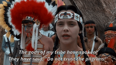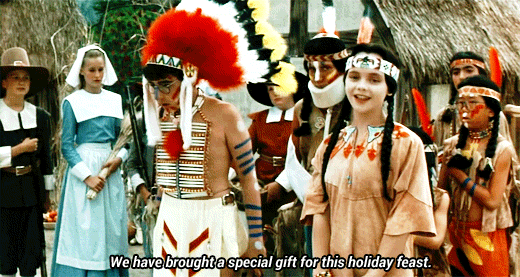 We potatoes could not love it more, because Wednesday isn’t just being rebellious… she’s being honest. The real Thanksgiving story, the one rarely taught, isn’t about harmony and shared feasts. It’s about the beginning of colonization, the theft of land, the spread of disease, and the genocide of Indigenous peoples. It’s about violence disguised as gratitude, cruelty rewritten as community, and erasure packaged as patriotism. Wednesday’s monologue doesn’t exaggerate, it clarifies. It names the truth beneath the costume glue and papier-mâché corn, and she does it in front of smiling parents who would rather applaud a lie than confront history.