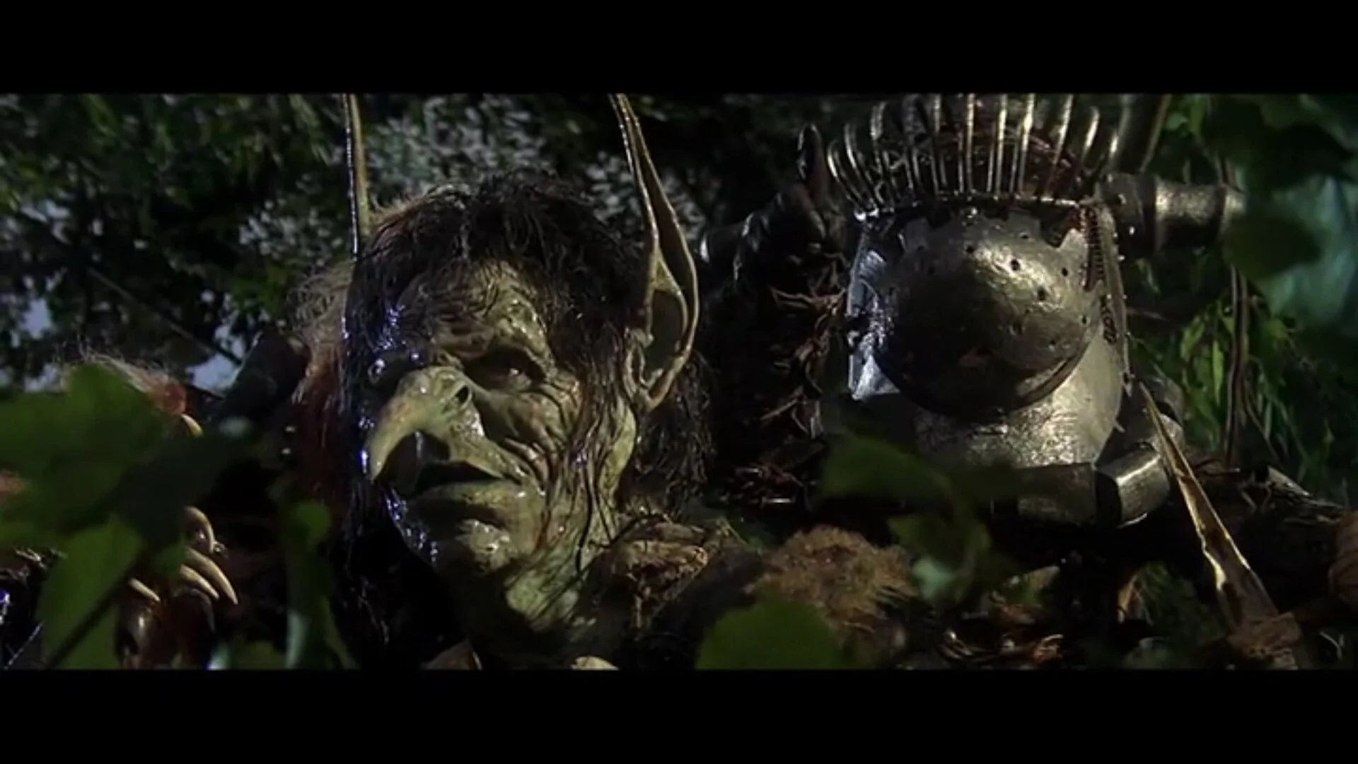 When we get through the exposition, we fade to a forest at night and a goblin-like creature lurking around in the woods. The goblin appears to be returning to his place of origin…what that is, is a bit confusing. All we see is a giant, tree like structure that looks like it has an opening in the front of it.