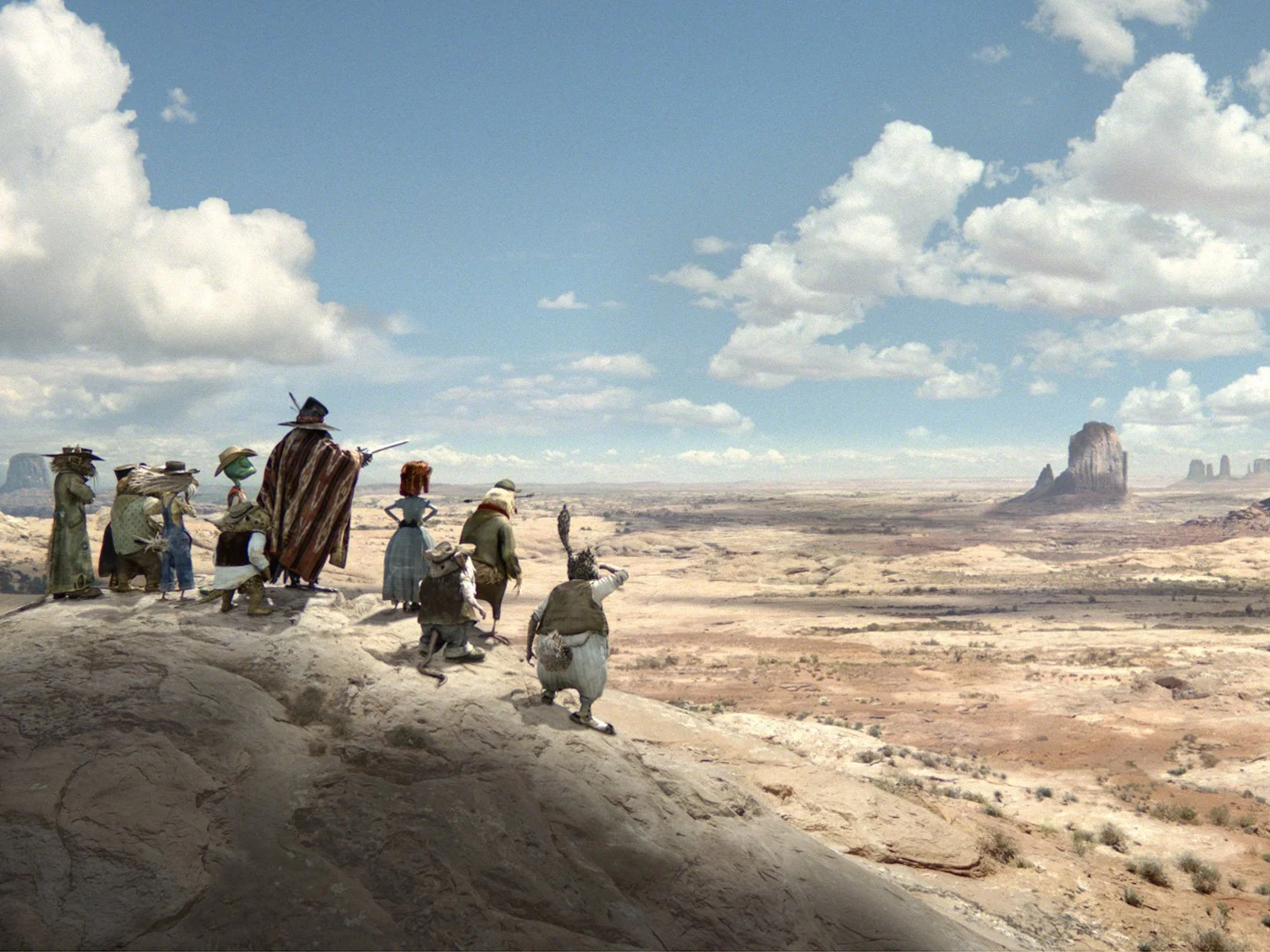 Rango is stunning! Every frame is rich with texture, movement, and light. The cracked earth looks real enough to touch! The sunsets are painterly masterpieces! The character designs are wildly unpolished, leaning into the grotesque and the weathered textures of life in the desert! Every creature looks like it has been carved out of dust, heat, and survival. We potatoes adore how unapologetically strange and gritty it is! It is beautiful and outlandish in a way that feels bold, exciting, and refreshingly different from the norm.