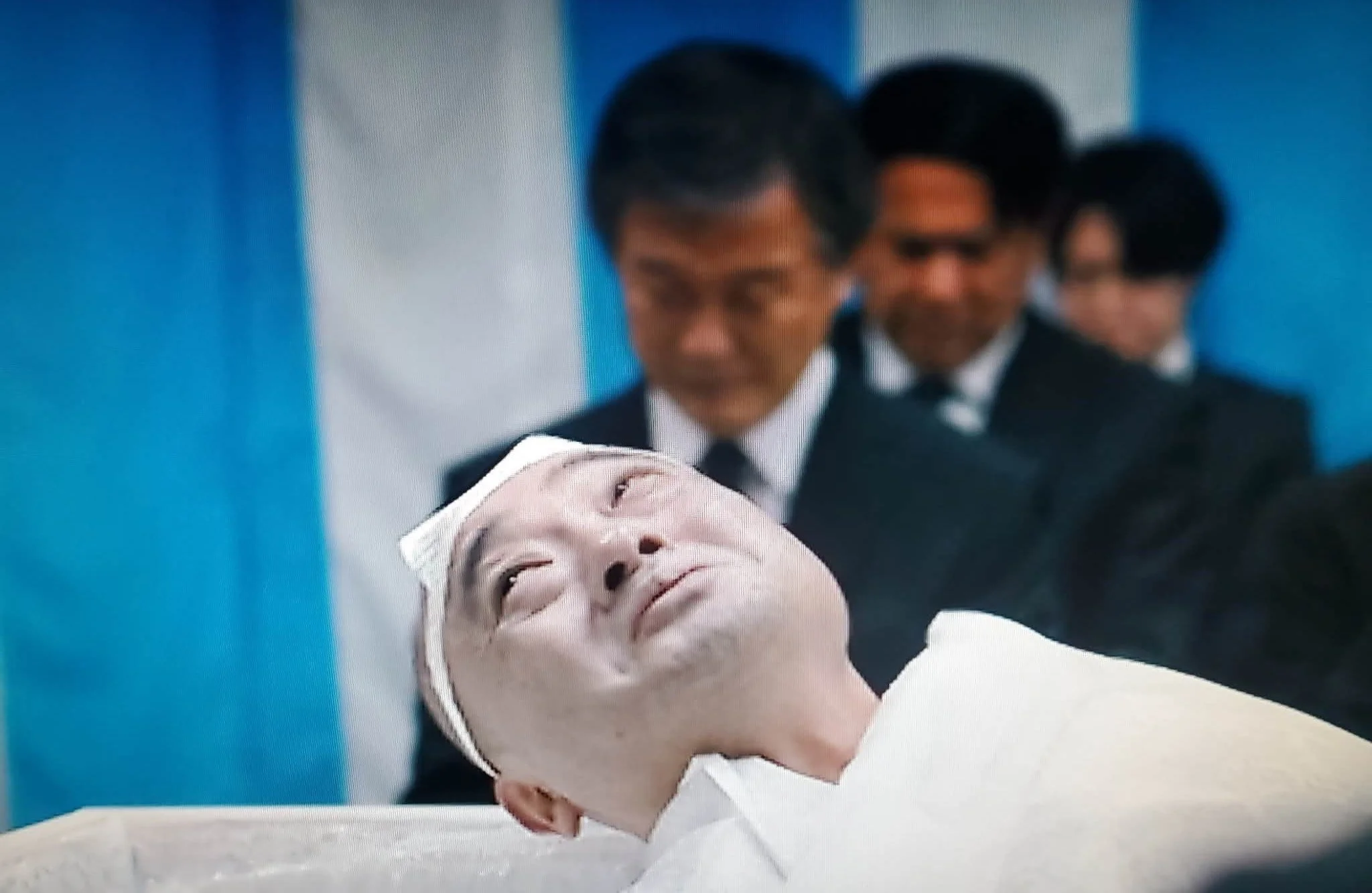 After Aiko is done, the man in the coffin Mr. Daito (Shohei Uno), lays his head back down into the coffin and closes his eyes.