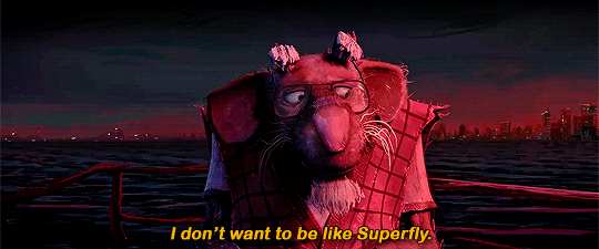 The commentary goes further still. Superfly’s treatment of his own mutant siblings carries the vibe of “I raised you, so you owe me,” not love, but control. A twisted mirror of Splinter’s fatherhood. Splinter may be overprotective and embarrassing, but his bond is love. Superfly uses trauma as a leash. He’s what happens when pain curdles into domination instead of care. Again, the movie never spells this out, but it’s baked into the DNA of the story.