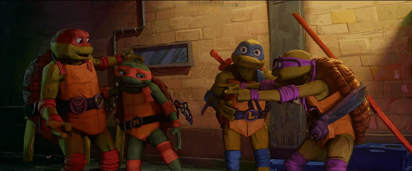 We’re going to wrap it up from here! Ninja Turtles movies always begin in the shadows. Ooze in the sewer, a rat for a dad, and four kids who just happen to be turtles. But what makes Mutant Mayhem so refreshing is how quickly it steps out of that shadow, not by changing the lore, but by shining a blacklight on it.