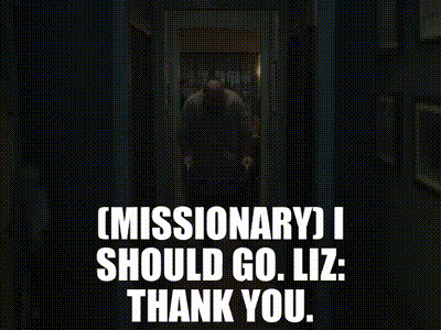 After completing her examination on him, Liz starts straightening up the house and Thomas turns to leave. It is here that we learn that Thomas is part of a church called New Life. We also learn that Liz’s family is heavily involved in New Life and she cannot stand the church in any capacity. We potatoes do not blame her one bit for this.